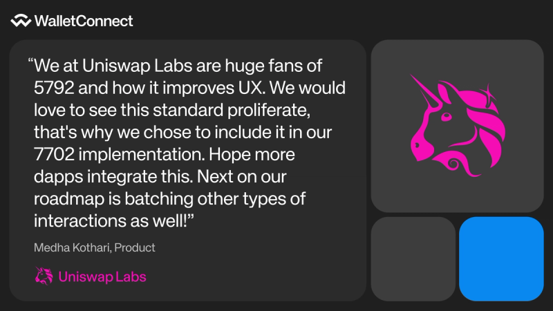 The WalletConnect Certified programme will foster EIP-5792 as participating apps and wallets will need to supprt EIP-5792 as we have teased here. Not all types of accounts will be able to support this but either way this will significantly boost the EIP-5792 adoption of both apps and wallets.
