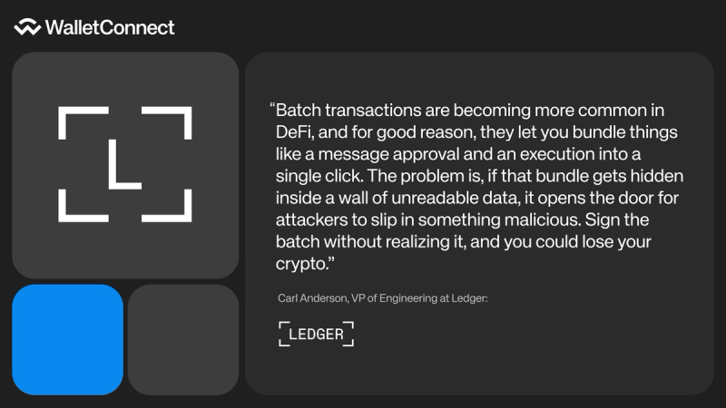 - Developer tooling: WalletConnect already supports 5792. Reown is adding CLI tools, test harnesses, and debugger support.