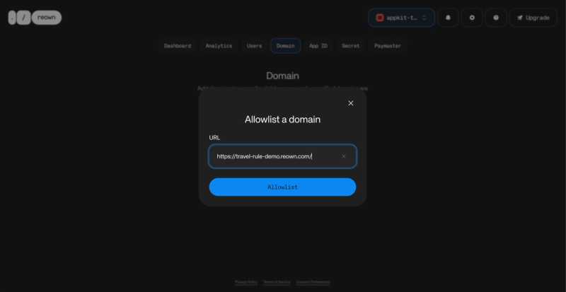 - Add your trusted domain on Reown Dashboard.