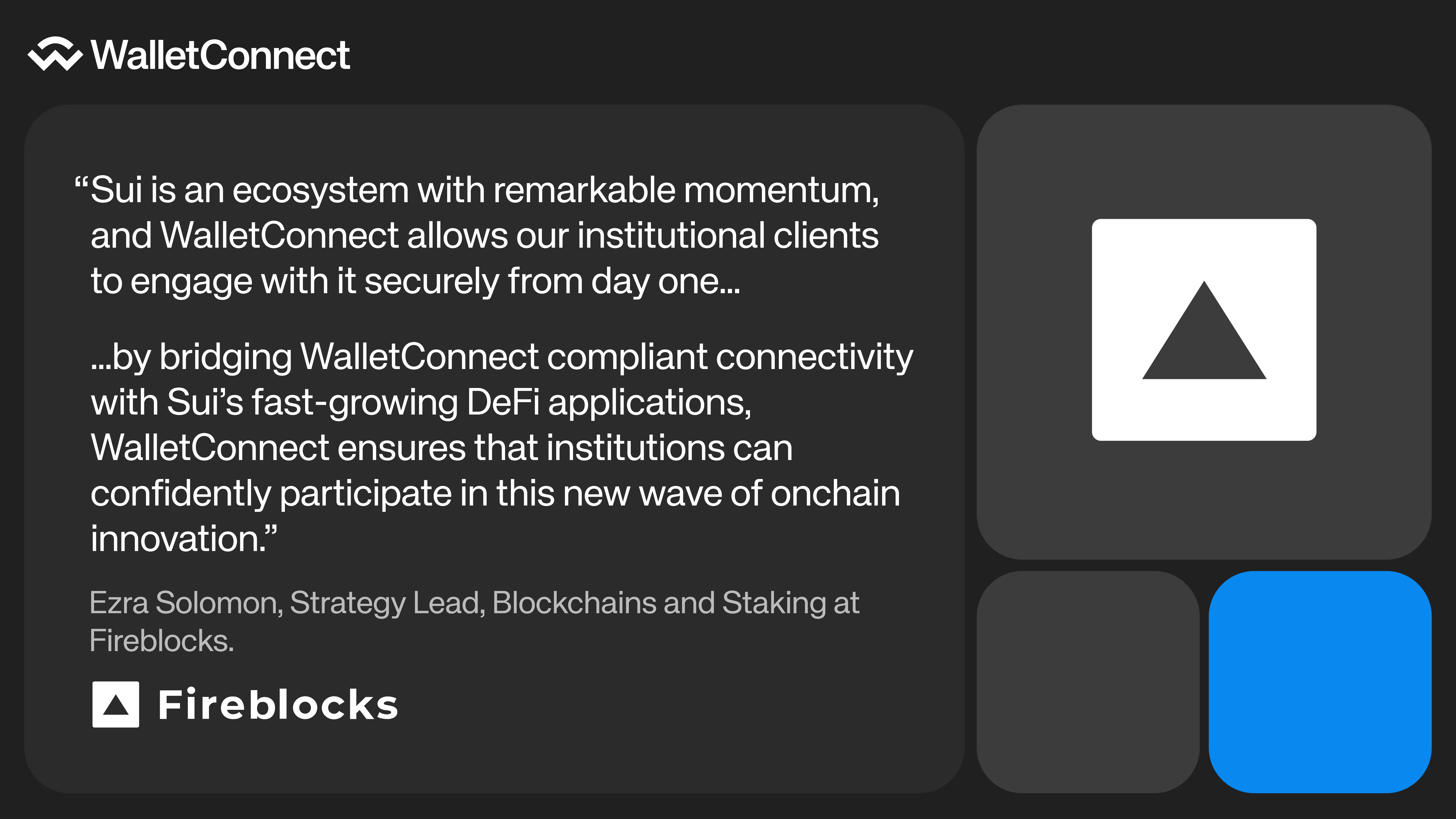 “Sui is an ecosystem with incredible growth, and WalletConnect allows our institutional clients to engage with it securely from day one,” said Christian Thompson, Managing Director at Sui Foundation. “By bridging WalletConnect compliant connectivity with Sui’s fast-growing DeFi applications, WalletConnect ensures that institutions can confidently participate in this new wave of onchain innovation.”