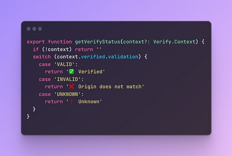 })That’s all you need to do to verify a domain in your wallet! You could take this one step further and add more text or warnings for your users. Wasn’t that easy?