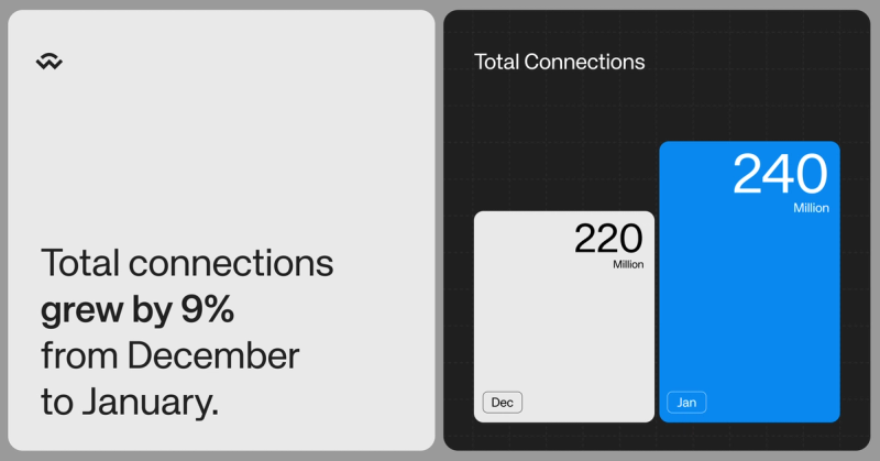 Total Connections: Connections grew impressively from December to January, climbing from 220 million to an impressive 240 million.
