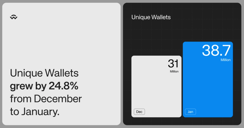 Unique Wallets: Unique wallets increased by 24.8%, rising from 31 million in December to 38.7 million in January.