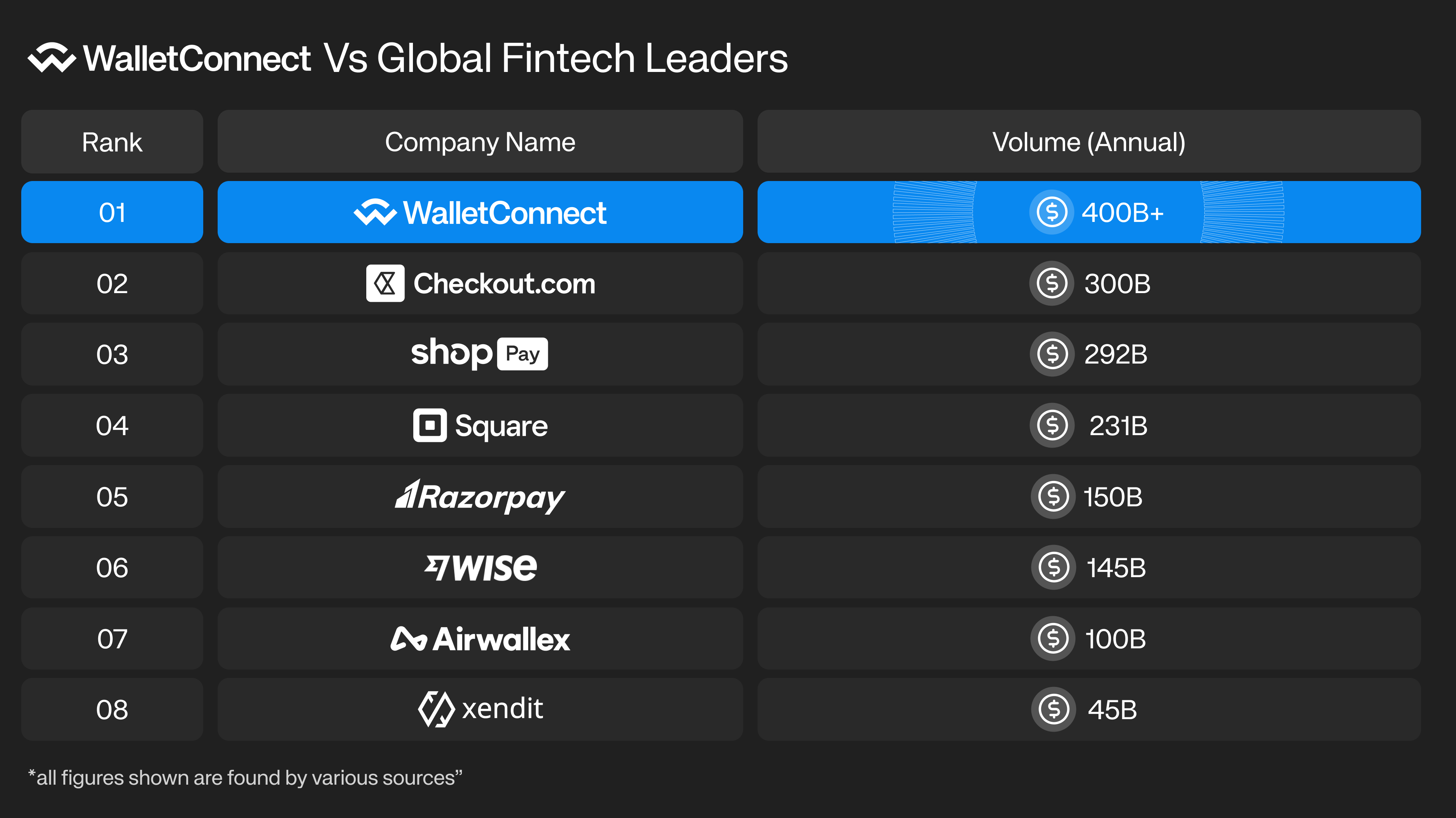 With $400 billion in Total Network Volume (TNV), WalletConnect has facilitated more value than some of the most recognized fintech giants. For context:
