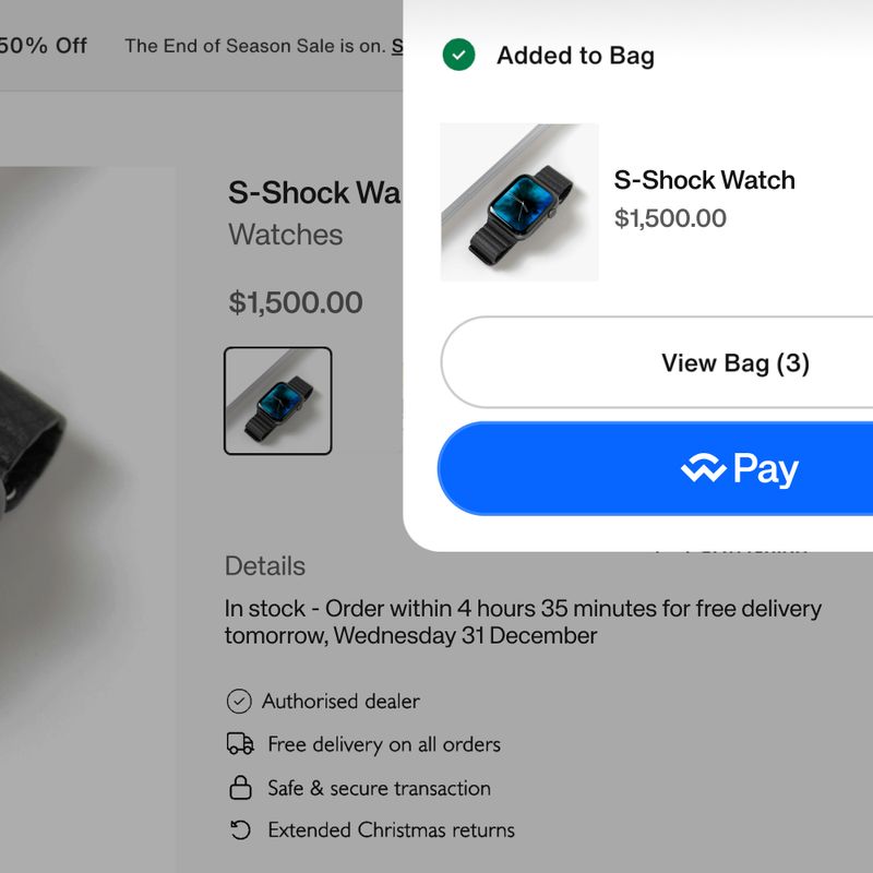 Payments fit cleanly into existing checkout flows, align with PSP compliance requirements, and follow payment patterns customers already recognize and trust.